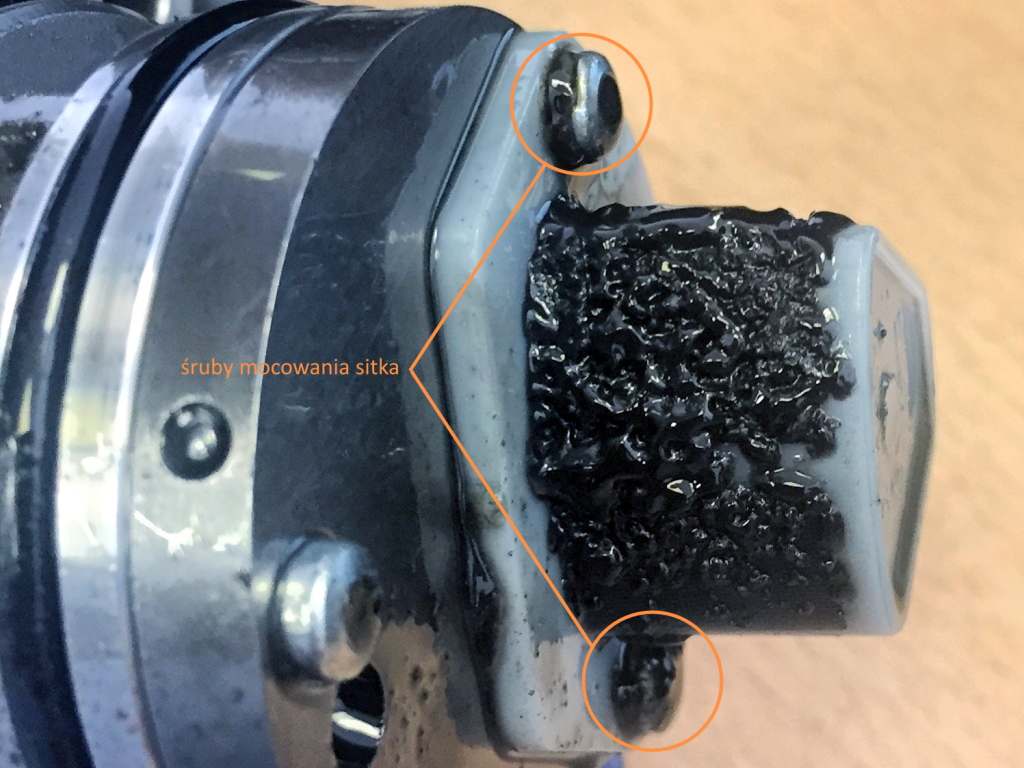 - Unscrew the two screws securing the pump strainer and thoroughly clean the strainer and the pump